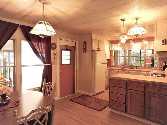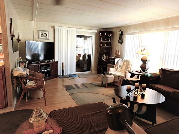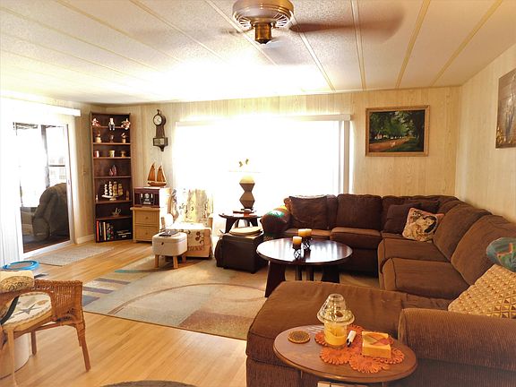 JUST REDUCED! This charming 2/2 home comes mostly furnished and has a layout that is perfect for those family and friend gatherings. The large lanai across the front gives extra space as well. The extra large master suite comes with a dressing area, two large closets as well as a separate water closet. The A/C is 8 years old and the home has had some electrical updates. The roof has been recently resealed and has new roof vents. It has a washer and a dryer that is about 5 years old. The kitchen has updated counter tops and one that is butcher block and a fridge that is 5 years old. Located in the beautiful tropical setting of Hawaiian Village, an active 55 adult community, you will be close to shopping, airports, hospitals and the beautiful white sandy beaches of the gulf shore. Pet Friendly up to 25 pounds. Give us a call today!