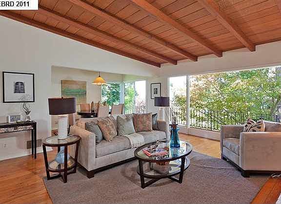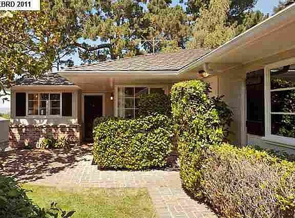 Captivating Ranch style home in Piedmont Pines. Private setting w/lovely Bay View. Spacious, light filled rooms, remodeled baths. Vaulted ceiling in open living room w/multiple glass doors leading out to level gardens. 2-car garage. Close to Montclair Village, Farmers Market, trails & parks.