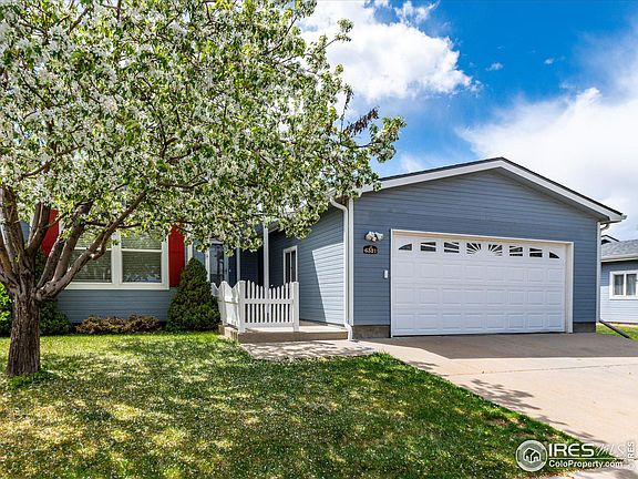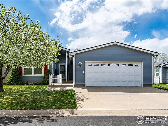 Built in 2006, this 3 bedroom/2 bath home is ready for you to call home! Meticulously maintained & lightly lived in.Covered porch entry. Freshly painted interior! New dishwasher & disposal. Great floor plan with open dining room &kitchen with bar/island to gather around and separate dining area with access to backyard patio. Hall bath has shower/tub combo. Primary bath has a large spa tub and walk-in shower. Oversize attached garage with side door access to the backyard and entry to the home into the laundry room. Easy commute to I-25or Hwy-85. Shopping, restaurants, coffee, and gas all within minutes of this great location. Prairie Greens is a land lease community. The land lease currently has a monthly fee of $785 and includes lease of land, road maintenance, street snow removal, clubhouse, fitness center, outdoor pool, and playground/park.