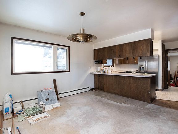This home sits on a large private lot overlooking the Chugach mountains, It has a high ceiling in the living room, a wood burning fireplace, some nice hardwood flooring. Upgraded triple pane windows throughout the home., There is an upper and lower deck on the backside of the home. The carport has another deck for your enjoyment. So many creative options for you to work with.