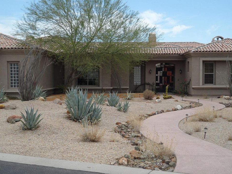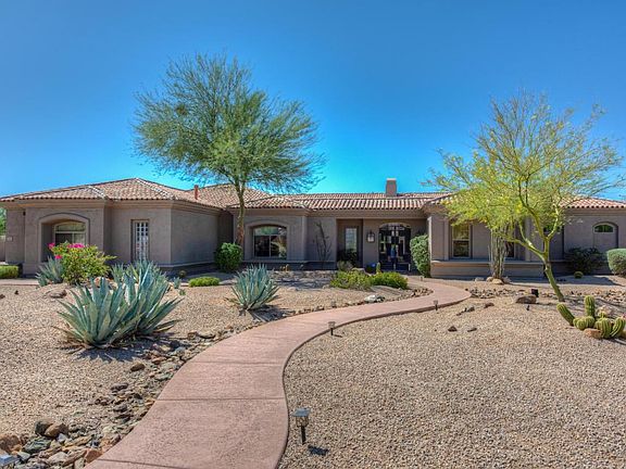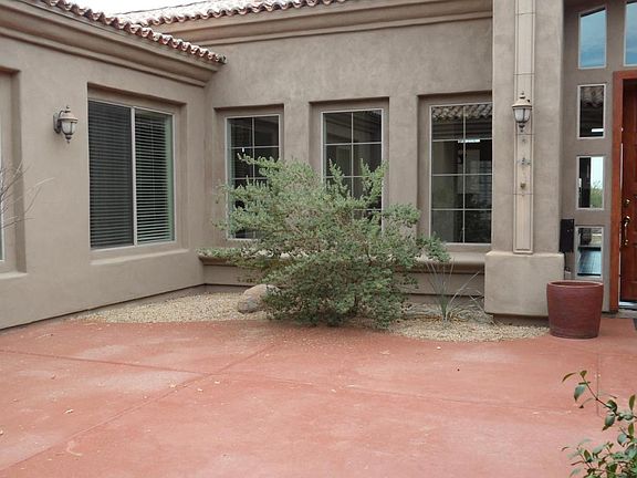 Small gated community with very low HOA fees. Just shy of an acre. 4 Bed 4.5 bath with extra den & game room. Double doors open to abundant den/office with closet could work as 5th bedroom. Guest casita! Generous kitchen has abundant cabinets, granite, SS appliances! Master has 2 way fireplace w/ bonus area.Glass blocked shower, bathtub w/jets, 2 walk-in closets. Another 2 way fireplace in LR & DR!All en suite bedrooms! 4964 sq ft. Bocce ball court & beautiful salted pool/spa for year round enjoyment. Observation deck offers breathtaking city, mountain, & desert views! New blinds for master have been ordered! 5 minutes N 0f 101, 25 from the airport.