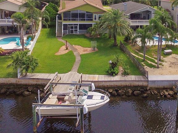 COASTAL LIVING AT ITS BEST WITH THIS WATERFRONT boater's paradise located in the desirable community of Gulf Harbors! This beautiful 2 story Key West inspired home with tropical landscape and swaying Palm trees will take you back to the islands! THIS WATERFRONT Home BOASTS 57' OF DEEP-WATER FRONTAGE to accommodate ANY SIZE BOAT with DIRECT ACCESS TO THE GULF OF MEXICO LESS THEN 10 MINUTES AWAY! This boat lover's OASIS offers your own DOCK AND 10,000lb BOAT LIFT. The upstairs features 3 bedrooms,2 full baths, wood floors throughout, master suite on the main level with duel sinks and fabulous views of the SPARKLING CANAL. Gourmet kitchen with GRANITE COUNTERTOPS, TRAVERTINE FLOORS AND EAT-IN BREAKFAST NOOK. The 1st floor features an ENORMOUS 875 sq.ft with ENDLESS POSSIBILITIES! Can be used as an IN-LAW SUITE with ceramic tile floors, large living room, Kitchen, 2nd Master suite, screened lanai and separate entrance or utilize as a gym,playroom,Home Theater, Gameroom or young adult private getaway, The possibilities are endless!! Enjoy a cold beverage on the over-sized LANAI overlooking the sparkling waterway OR TAKE A RELAXING SOAK in the oversized HOT TUB as you watch MANATEES & DOLPHINS FROLIC. COMMUNITY AMENITIES INCLUDE pool/spa, private beach,tennis courts,boat ramp and clubhouse DON'T MISS OUT ON THE BEST WATERFRONT VALUE IN TAMPA BAY!