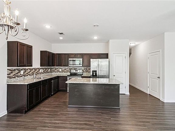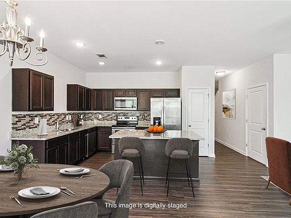Newer Townhome with Contemporary Design Features throughout and Lots of Natural Light. Open Concept Kitchen features Stainless Steel Appliances, 9-foot Ceilings, Espresso Cabinetry, Granite Countertops, Center Island, Large Pantry and Overlooks the Family Room. Breakfast area opens to a private back patio. Great for gathering with family and friends. Half bath on main. Upstairs features a spacious owner's suite with a walk-in closet and a shower. The two additional bedrooms share a spacious hall full bath. Fresh interior paint throughout. Enjoy the private views of the wooded area in the back. Single-car garage and driveway as well as plenty of room for additional parking. Great location, convenient to Truist Park, Smyrna Market Village, West Midtown, and The Silver Comet Trail! Tucked away in a quiet, residential area just minutes down the road from the Publix shopping center. Community includes a Swimming Pool and a Cabana. All kitchen appliances and washer and dryer included.