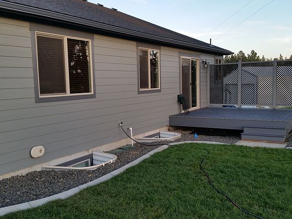 New ranch home with walk out day light basement and 2800 square feet of finished living area with attached garage and a huge shop with power paved drive way landscaped with irrigation and sprinkler system. The home features granite counter tops in the kitchen gas fireplace with wood mantel 5' shower with glass door and walk in closet in the master bed room, a tankless gas hot water heater also a 3000 gallon water reservoir, brand new beautiful stick built sunroom with 12ft slider opening to gorgeous views of Mt Spokane, gazebo, wood blinds solid wood doors and wood trim waterproof plank flooring with hardie plank siding and a large garden shed all on 3.3 acres all in the coveted Orchard Prairie school district. Must see!
