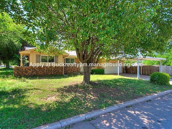 Trees surround this charming home situated on a large corner lot. Tons of natural light throughout. The open kitchen is equipped with granite countertops, refrigerator/freezer, oven, and range. Plenty of storage space with extra closets, garage workbench, and 2 storage buildings in the back. The home has a covered front porch and 2 car garage plus double carport. Tile throughout main living areas with carpet in the bedrooms. Great neighborhood and location just minutes away from Lake Hefner, emergency care, pharmacies, shopping and dining. Easy access to Kilpatrick Turnpike, Lake Hefner Parkway, and NW expressway. Go to the URL listed on the photos for an application or contact listing agent to schedule a tour. 12 month lease. No smoking. Security deposit = 1 months rent. Renters pay for all utilities. Washer/dryer hookups in garage. Up to 2 animals accepted. Pet rent: $25/month for cats and under 40 pound dogs, $35/month for 40 pound or more dogs. Applications are $35.