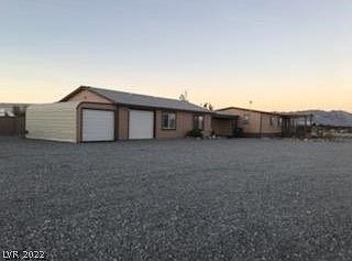 This well-kept 3-bedroom, 2-bath mobile home with rock and gravel landscaping sits on a 1.10-acre lot and has a view of beautiful Mt. Charleston. The property has an attached garage, carport and two motorhome hookups. This is a MUST SEE property, it offers so much more than pictures can show.