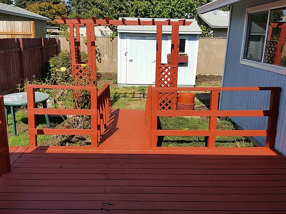 Very Cute 3BR/2 Full Bath Single Level Home w/Fireplace in Kitchen/Dining Area. Fresh paint, newer double pane vinyl windows, just stained back deck, great storage/tool shed,2 car attached garage. ALL APPLIANCES STAY; including: refrigerator, washer, dryer & range. Private fenced yard. Ramp for handicapped access.