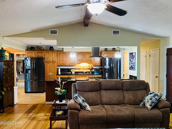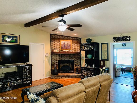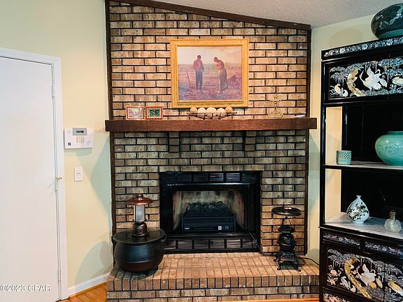 Come see this super clean well cared for home in Callaway. This beautiful home is located just a short distance to Tyndall Air Force Base and only 30 minutes to Panama City Beach. You will love the open floor plan with the spacious living room that features vaulted ceilings, brick electric fireplace, bamboo floors and smart thermostat. The separate den will give you that added living space and the formal dining room will accommodate a large dining table and china cabinet. The lovely kitchen features oak cabinets, granite counter tops with breakfast bar, flat top stove, tile backsplash and double refrigerators. You will love the new tinted double paned windows that have built-on exterior storm shutter holders. The home has an elegant feel with crown molding, lots of space and a built-in security system. The office has been converted into a very large master bedroom closet. This room could easily be an office, hobby room, exercise room, 4th bedroom or left as-is. Enjoy your evenings on the covered back deck with privacy fence back yard and 8x10 workshop. The home feels much larger than what the square footage states and offers more than most homes on the market in this price range.