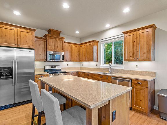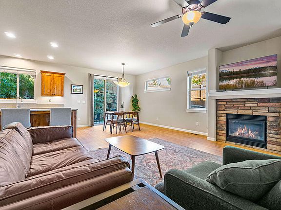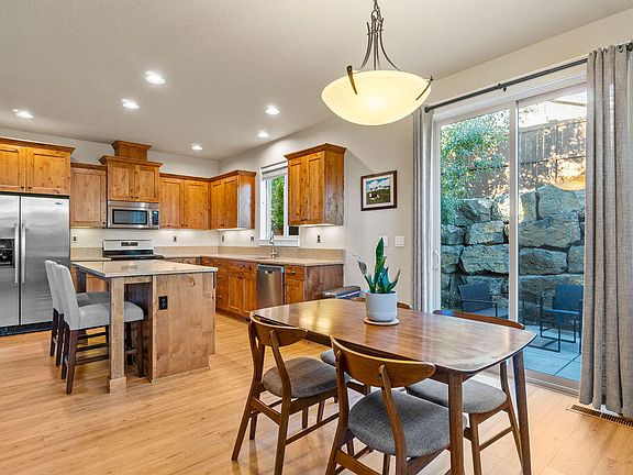 Beautiful Pahlisch townhome in desirable McCall Landing that sits conveniently next to Boyd Park and a quiet dead-end street. This light and bright end unit home has engineered vinyl wood floors throughout the main level and upstairs bonus space. Downstairs is an open living room and kitchen with solid surface counters, dining room, tons of storage and pantry. Upstairs you'll find 3 bedrooms, laundry room, plus a bonus space. The spacious primary suite includes an ensuite bathroom, walk-in closet, double vanity and direct access to the laundry room. No more lugging laundry up and down stairs! The bonus space is perfect for an office, workout room, kids play area or a TV room. This house is just minutes from breweries and the HOA even manages the front yard care! Complete with a beautiful backyard with patio and green space, along with a two car garage, this home is everything you've been looking for in Bend. Come live where you play!