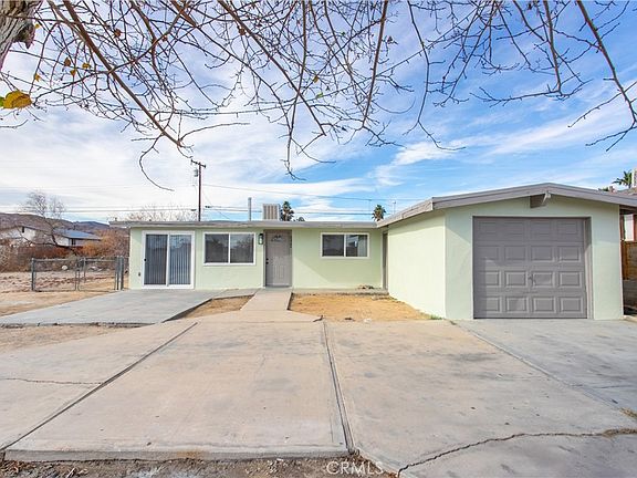Looking for a beautiful, FULLY RENOVATED desert home or investment property?! Look no further! This lovely 3 bedrooms, 2 bath home features 1,204 sqft of living space with a modern style, spacious floor-plan and numerous upgrades throughout. The front door opens to a bright and airy living space with warm wood-like laminate flooring, a stunning wood beamed ceiling, a sliding glass door to the front yard and fresh paint throughout. The awe-inspiring kitchen is complete with gorgeous quartz countertops, tasteful backsplash, bright white cabinetry, stainless steel appliances and recessed lighting. The spa-like bathrooms feature walk-in showers, new vanities and sleek black fixtures. Some notable features include: all new windows throughout, a brand new swamp cooler (which is ducted throughout the home), a new water heater and all floors, doors, fixtures, cabinets, countertops & appliances inside the home are new. There is also a convenient space for a stackable washer/dryer in the home. Outside you'll find a nice 1 car garage, fully fenced backyard with a double gate opening for RV parking and plenty of space to entertain or relax around a firepit on a starry desert night. Located just minutes from downtown 29 Palms, the Marine Corps Base, Joshua Tree National Park, schools, shopping, restaurants and more. Move-in ready, come take a look and fall in love! Your new desert home or weekend retreat awaits.