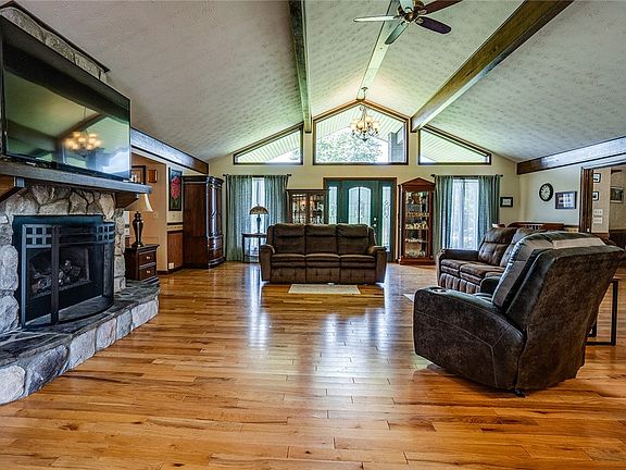 Impressive sprawling ranch in town of Bath with Campbell schools! Located not far from 86, and centrally situated to both Corning & the Finger Lakes; this almost 3600 sq ft ranch sits on 4 private acres. Inside the home you’ll find 2 huge living rooms open to each other, both walking out to gorgeous oversized back deck and stamped concrete patio overlooking the lush landscape. The main living area has focal rock gas fireplace, vaulted ceilings with gorgeous beams and large dining space all open to the updated gourmet kitchen. The kitchen offers granite counters, huge working island, high end appliances and bar seating. The bedroom wing has 3 guest bedrooms, full guest bathroom, dedicated laundry room and beautiful primary bedroom with walk in closet, additional closet space, and spacious, luxurious full bath with tiled shower, and soaker tub. Hardwood floors throughout the home! FULL unfinished basement for tons of storage, or potential additional finished space. A deep true 3-car attached garage plus detached insulated & heated shop, and small barn with chicken coop. The home has been wonderfully updated, maintained and has too many amenities to list! Come see for yourself!