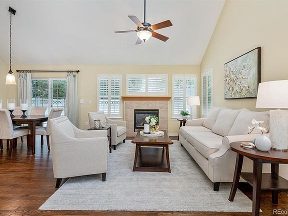 Outstanding main level master end-unit location in Arvada's highly desired Wyndham Park townhomes. You are welcomed by lots of natural light, extensive hardwood floors & soaring ceilings as you walk into the spacious family room with gas log fireplace & open concept living. Spacious dining room adjoins the living room with easy access to the kitchen & extended fully fenced, very private back patio with mature trees for summer shade. Main level boasts hardwood flooring, granite countertops, white cabinets with a farm style iron mesh upper cabinet accent & stainless steel appliances. Convenient main floor laundry room/ bag drop is located off the kitchen with easy low threshold access to the garage. This popular Village Home floorplan features double master suites, one on main floor & the other upstairs. Each offering walk-in closets & full bathrooms. The main level master suite has 5-piece bathroom with double vanities, large soaker tub & professionally organized master closet. The upstairs master features vaulted ceiling, ceiling fan/light, large closet & en-suite bathroom. Airy open-to-below loft on the upper level is ideal for home office space, kid's retreat or media area with closet. Open unfinished basement has structural subfloor & gives the next homeowner the flexibility to finish the space as needed or offers a much needed storage area. The Wyndham Park community is conveniently located in West Arvada with easy access to shopping, schools & outdoor activities. The YMCA is walking distance & there are parks and walking trails throughout the community and access to grocery, dining options, and quick access to the highway. Bike/walking enthusiasts will love the quick access to Van Bibber and Ralston Creek Trails. Lots of green space, community park, and small ponds filled with lily pads, flowers and extensive inviting natural spaces. Large 2-car garage with rubber mat floor covers & a very private front door entrance gives the feel of a single family home!