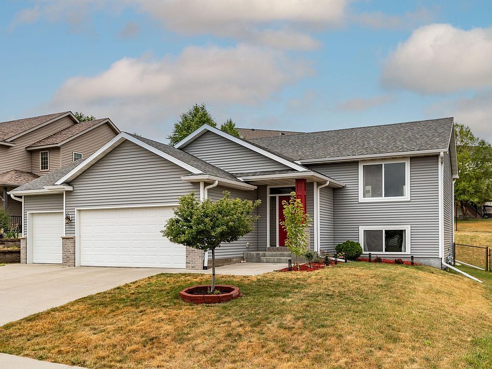 Come see this great move in ready home with fenced in backyard and 3 car garage. The home was just completely repainted by professional and carpets cleaned. Open floor plan with vaulted ceiling and large entryway. Spacious living room with west facing window. The kitchen boasts upgraded cabinets, center island and stainless steel appliances including a brand new stove and microwave. Hardwood floors in kitchen and dining room. Tile floors in the entryway and bathrooms. Plus a large family room! Newer deck, chain link fence, water softener and brand new washer. Call for a showing as this one will sell fast!