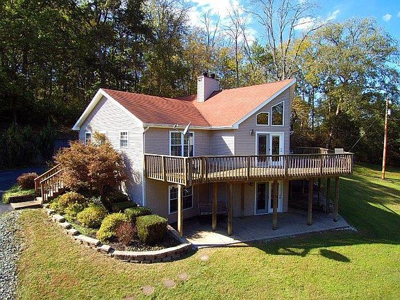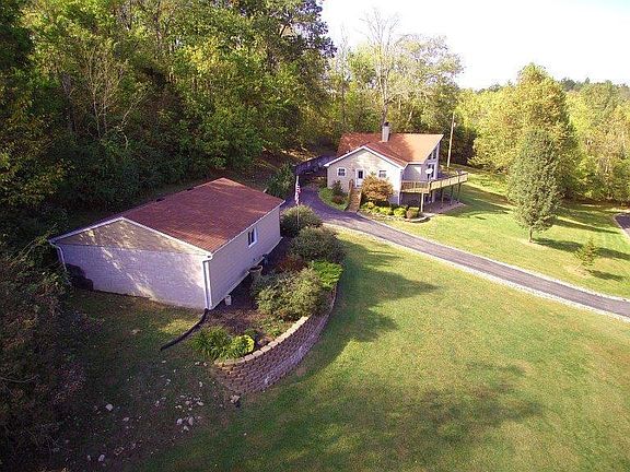 Exceptional, unique, contemporary, beautiful contemporary. Probably one of a kind! And, it offers privacy and a 30 minute drive to Louisville via I-71 at LaGrange, exit 22, Pendleton, exit 28, or `straight in Hwy 42. Also, great for heading north! Custom built for these owners, exceptional design! There is a fabulous great room in the front of the house wrapped in windows for fabulous views! Enjoy the front balcony/deck/porch as well. The great room wraps around the massive stacked stone look hearth, which rises all the way to the top of the vaulted tongue and groove ceiling. Go around the hearth, either side, and there is the spacious dining area, with its great view of the back yard. The deck is just outside the dining area.