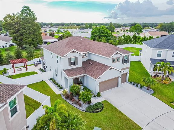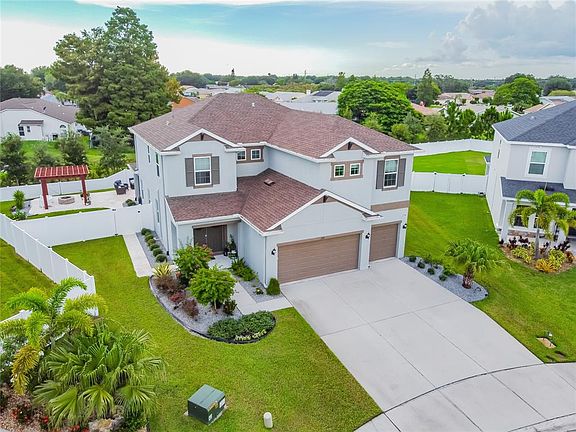 Why wait to build when all of this can be yours.. This Celebration II four bedroom, two and a half bath home with bonus room sits on one of the best homesites in Old Mill. Located on a quiet Cual-de-sac, this huge pie shaped homesite gives you an expansive backyard and no back yard neighbors. The three-car garage is ideal for extra storage space. Upon entering this open concept home you're greeted by wide open family and dining areas perfect for entertaining and conveniently located adjacent to the kitchen featuring a huge center island and ample cabinet and countertop space. It's a chef's dream! The covered lanai is also perfect for extending to outdoor living in this quiet setting. Enjoy plenty of space for everyone upstairs with four bedrooms and a large game room area while keeping a private den downstairs for home office or guests to sleep. 42" cabinets, granite countertops in kitchen and baths, 18x18 tile flooring, brushed nickel fixture upgrades and a luxurious garden bath in the owner's bath complement the perfect living space in this home that won't last long! This location provides homebuyers with convenience of a fabulous location, close to I-75 and I-275 for access to Tampa, St. Petersburg, and Sarasota. The custom designed pool is beyond all your dreams with spa and lighting . All this and no CDD . Hurry this one will go quickly.