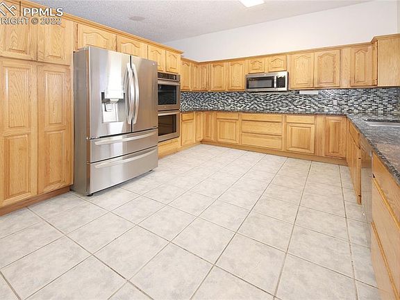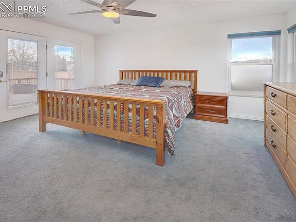 Stucco rancher with finished basement and impressively spacious rooms! 1/4 acre lot has wide drive-though gate to fenced parking! Kitchen has been updated with granite counters, glass-tile backsplashes and newer appliances including dishwasher, refrigerator, microwave & double wall ovens. Handsome new bathroom cabinets & vanities. Several bedrooms include walk-in closets A generously-sized dining room has a built-in buffet counter and walk-out doors to the east deck. Other updates includes a new furnace, new central A/C, a tankless hot water heater, upgraded electric service and vinyl replacement windows Finished bonus room in lower level can be a storage area, hobby room or extra bedroom! There is a big, welcoming covered front porch with mountain views and an oversized garage. An automatic sprinkler system irrigates the front yard landscaping. Enjoy front range mountain views also from the living room, master bedroom and west deck. Large back & side yards include an additional 16 x 8 garage just right for ATVs, 10x10 tool shed, RV parking and a separately-fenced garden with raised beds * City recreation center with water park and running track is nearby as well as Cottonwood Creek Trail for miles of off-road bicycling, hiking & dog walking. Well-located and convenient to schools, shopping, employment, Academy Blvd, I-25 and Powers Blvd!