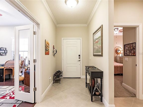 Beautiful details are included in this highly upgraded 2 bedroom, 2 bath plus den villa. A covered front patio area is a private little oasis for morning coffee! The wide foyer leads to the den with its glass French doors. It would make a quiet office or library. The spacious great room with high coffered ceiling and deep crown molding has 18" diagonal tile and a nicely-integrated dining area. It flows into the open kitchen, which features stunning quartz counters, gas range, stainless steel appliances, maple espresso full overlay cabinets, and both recessed and pendant lights by the breakfast bar. You'll notice subtle features such as the tasteful backsplash and under cabinet lighting. The floor plan has a separate guest bedroom with walk-in closet and bath towards the front of the house and the owners' suite to the rear, offering privacy for both. The great room and kitchen offer views to the lanai and landscaping in the private back yard. This is a conveniently-located awesome gated community, which features a heated pool and spa, BBQ area, No CDD, and reasonable HOA fees that cover the roof, paver driveways, and all exterior yard maintenance. Some additional features are the 2-car garage, paver driveway and walkway to the front door, tile roof, gutters, hurricane shutters, keyless front lock, and UV light in the air conditioning unit. Close to University Town Center (UTC) with shopping, restaurants, and medical services. Easy access to Lakewood Ranch, the airport, parks, and downtown Sarasota for symphony, ballet, movies and live theater, opera, fine dining, nationally-known entertainers, cruises on Sarasota Bay, and Selby Botanical Gardens. This special 92-villa community is pet-friendly and will be your favorite! This villa will feel like a model with all the upgrades. Schedule a private showing today.