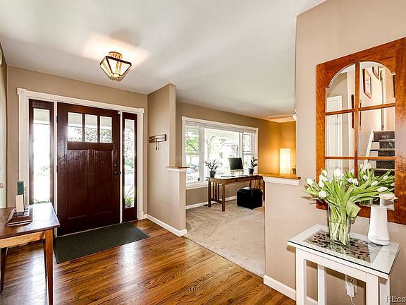 Updated, impeccably-maintained home with custom details on premium central lot in Cherry Park. This property boasts fabulous updates: concrete tile roof, James Hardie siding, newer windows throughout with custom wood shutters, hardwood floors and attention to all the details. Kitchen equipped with stainless steel Kitchen Aid appliances, granite countertops, open shelving, extended breakfast bar, space for a custom kitchen cabinet and above-the-sink window with park-like backyard views. Mature landscaping and beautiful large yard, swing set included, spacious shed right next to the garage, workbench and organized garage storage. Step from the 2-car garage into mudroom space with hooks, cabinets and bench. Private quiet main floor bedroom and bathroom on this level. Perfect home for entertaining with large exterior patio flowing nicely into the sunlit family room characterized by high ceilings, fireplace with custom insert and an updated railed staircase. Primary bedroom with en suite bath and walk-in closet, plus 2 additional bedrooms and full bath with double vanity on upper level. Finished basement great room. Voluntary owners association offers holiday celebration gatherings in the park. New community pool built in 2020, tennis courts and open space trail system connects with the Highline Canal. Central neighborhood park boasts a playground, mountain views, basketball court and sports field. Short walk to elementary school in an award winning school Cherry Creek school district! Minutes from shopping, Denver's Tech Center, Fiddler's Green and I-25.