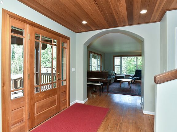 Very private 1.78 acre w/Craftsman style home, wood floors, current kitchen and baths, covered decks, greenhouse, 864 SQ. FT. shop building w/additional storage and oversize 2 car garage,multiple fruit trees, year round stream, fenced pasture with small barn.