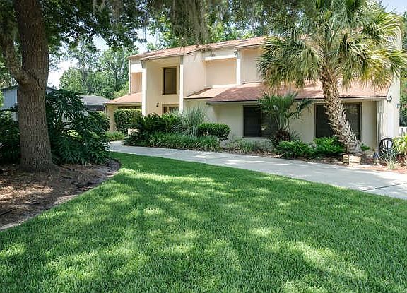 Peaceful golf course views! This light & airy Contemporary Gainesville Country Club home has been immaculately maintained. Enjoy low maintenance exterior concrete block/stucco home & spend more time enjoying the golf lifestyle. Soaring ceilings & gorgeous views of the 3rd hole fairway create a sense of calm as soon as you walk in the home. Entertain a crowd in the dining room that can seat 14 or do a little gardening w/your very own atrium. Updated kitchen w/Cherry cabinets is center of home while, upstairs master suite has renovated bathroom/walk in closet & private balcony. Save money with newer roof. Join the Country Club for golf, tennis, restaurant, children's camps & more! Minutes from Shands/UF & I-75, shopping/restaurants. The updated kitchen is a chefs delight featuring a Bosch dishwasher, Corian counters, Miele cooktop and double ovens and ample storage in two large pantries. An intimate dining area leads to the tiled screened porch. The formal dining room has a custom walnut dining table (for up to 14) and buffet that can be conveyed to the buyers at closing. Upstairs, the 270 SF owner suite has a balcony view, remodeled bathroom and walk-in closet. The second bedroom has an enclosed porch with views to the yard. Two of the four bedrooms have windows facing the front. These 2 bedrooms have been joined, allowing a sleeping area and a more spacious adjacent activity/study area perfect for teens. This can be easily converted back to a separated bedroom. The 670 SF garage has an enclosed 35 SF storage area, and ample room for a workshop and car. Many updates including expanded deck, pergola, new roof, repaved large circular driveway - and much more.