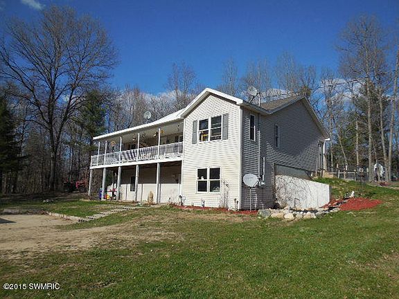 Situated on a 15 acre corner parcel, convenient to White Cloud, US131, Hardy Pond and the Muskegon River rests this 4-5 bedroom 2 1/2 bath walkout home. Many amenities include an outdoor wood burner, central air, run-in shed for horses, manicured trails throughout the land, gardens, above ground pool with 8 ft. deep end, dog run and children's play equipment. The nice newer home features newer hardwood floors, slider to back deck, master suite with large private bath and walk-in closet, covered deck, main floor laundry, huge unfinished rec room in the walkout level along with 2 more bedrooms and a 1/2 bath. Just installed an on-demand hot water heater and much more! If you are looking for convenient and room to roam, you just found it. Call us today for your private showing.