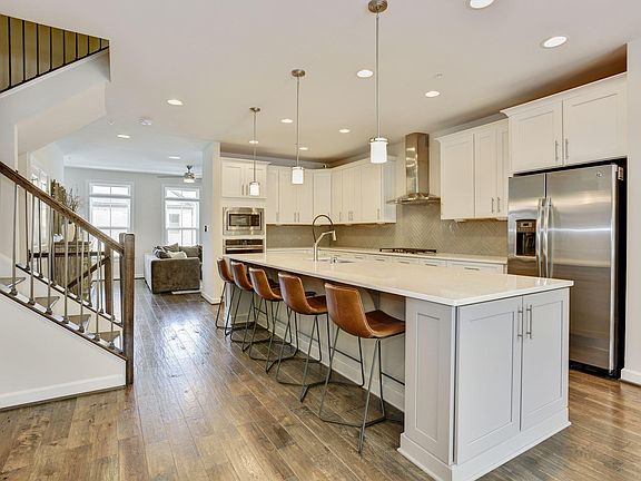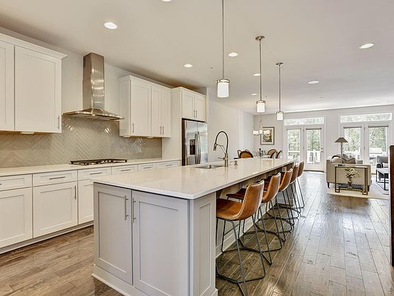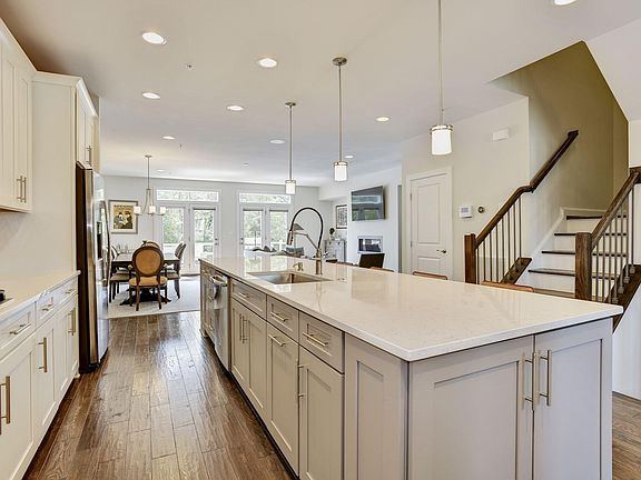Gorgeous open concept townhome with modern sophistication! Ascend the stairs from the spacious ground level and feel welcomed by the incredible kitchen - a chef's delight! The kitchen boasts a massive center island with breakfast bar, pendant lighting, expansive cabinetry, stainless steel appliances, Herringbone backsplash and granite counters. Gorgeous hardwood floors flow throughout this home, which is soaked by sunlight throughout the day from the sizable windows. Entertain in the spacious living room with recessed lighting, double french doors with transom windows, and access to the private deck. The first main level is amplified by a sequestered office space, which could also double as a separate family room. Relax and unwind in the master suite with tray ceiling, custom blinds, double vanity, walk-in closet, and glass door walk-in shower with double bench and ceramic tiles. Possibilities are endless in the fully finished 23 x 23 lower level that offers plush carpet and full bath that provide an ideal space for entertainment or a 4th bedroom for guests. This home is a unique gem in the community in that it backs to a private wooded area; the patio on the ground floor grants tenant access. Neighborhood pool, fitness center, and club house provide an entertaining paradise. Within walking distance is a brand new shopping center with local tenants including Michael's Cafe, Potomac Pizza, Thai Rainbow and a Wine & Spirits store, among others. Major commuter routes include White Marsh Blvd, US-40, I-95, and I-695.