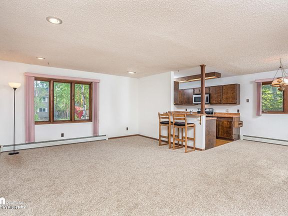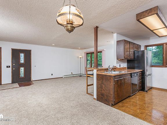 Great Home East Anchorage! Quiet Street, perfect for family who wants Solitude. Newer roof, paint, flooring, and has enough updating left to do that someone can make this house into a perfect home. Open concept Living. Two beds and bath down, two beds and bath up. Nice fireplace upstairs with a bonus family room. The master bedroom has a nice balcony with Awesome Mountain Views! Close to JBE