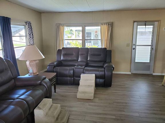 Dreaming of taking a vacation in Florida, you can, when you see this amazing 2 bedroom 2 bath home that features an open floor plan, dining area and kitchen. It offers a refrigerator, stove and microwave and has a good sized pantry and a built in hutch. This home has a large Florida room where you can relax and enjoy your day. The floors are only 2 years old and are laminated and vinyl. The ceilings are paneled and the walls have wood paneling. There is central air and an electric water heater. This lovely home has an attached storage unit and a great carport together with a patio in the large backyard where you can enjoy the Florida sun. Located in Hawaiian Village, this park offers a clubhouse, pool, fitness center, shuffle board court and a billiard room and is pet friendly. The lot rent is $516.00 and includes lawn care. This park is a short distance from Restaurants, our Florida Beaches, Churches and Hospitals and our local airport. So do not miss this opportunity to own this wonderful home by calling for a showing today! All listing information is deemed reliable but not guaranteed and should be independently verified through personal inspection by appropriate professionals. Integrity Mobile Home Sales cannot guarantee or warrant the accuracy of this information, measurements or condition of any property. Measurements are approximate. Lot rent subject to change.
