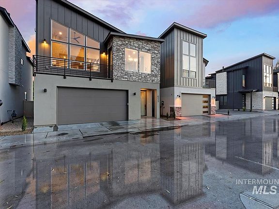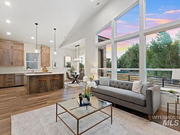 Contemporary design by Cook Brothers Construction. Open floor plan w/ vaulted ceilings and beautiful large windows with Boise foothill views. Home features custom cabinets, quartz and tile throughout. Large master suite with awesome tiled walk-in shower. The Greenbanks community is just minutes away to the Ridge to Rivers trail system for hiking & biking, Bogus Basin Ski Resort, the Boise River, White Water Park, and Hyde Park in the North End!!