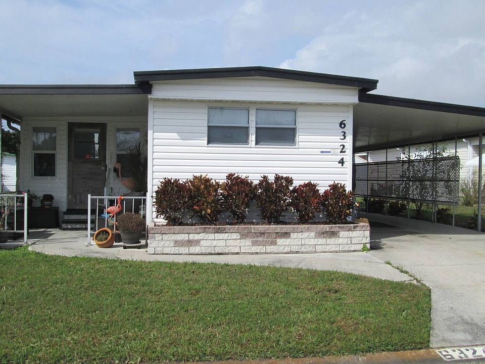 This lovely 2-bedroom home is very comfortable with an open floor plan, nice sized kitchen and plenty of storage for all that extra stuff! Home features textured walls, wood floors and plenty of natural light for a nice feel of home. Enjoy your morning coffee or extra entertainment space in the Florida Room. The main bath features double sinks and you will appreciate the extra-large storage closet with washer and dryer PLUS the covered parking! Located in Hawaiian Village, a 55 adult community with so many conveniences nearby to make life easier! Spend your days enjoying our beautiful clubhouse or relaxing at our heated pool. Call today to make an appointment to see this home! Priced well, it won't last long!