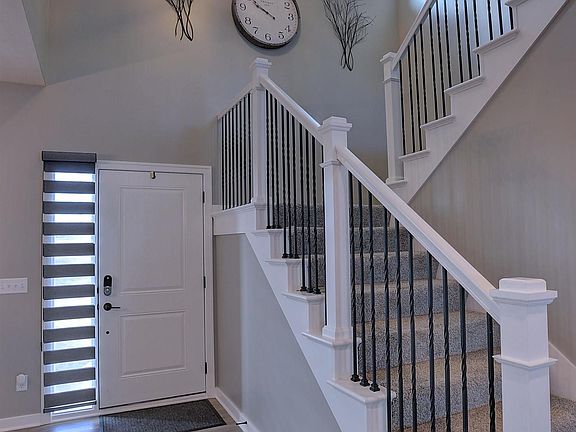 Open Sunday, 2-4! Main floor w/ 2-story entry, LVP flooring, 9’ ceilings, gourmet kitchen w/ coffee bar in walk-in pantry, formal dining, coffered ceiling & electric linear stone fireplace in great room, ½ bath, drop zone, guest suite with separate living area, bedroom, walk-in closet w/ laundry and ¾ bath. Second floor has 3 large bedrooms, laundry room (washer & dryer included), full bath w/ 2 sinks, media room w/ custom built adjustable shelving, primary suite w/ full bath, walk-in shower w/ dual shower heads, 2 sinks, & walk-in closet. Finished lower level has large rec room, ¾ bath, flex room, and workout room w/ BowFlex & gym flooring included. Most TVs and mounts stay. Custom window coverings throughout. Gas firepit in rear yard. Custom landscape lighting. Full vinyl fence on corner lot w/ French drain system. Amazing water feature in front. Halloween and Christmas lighting included. Shelving and fridge stay in storage room.