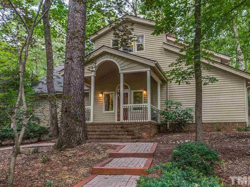 Nestled on over an acre of mature trees, adjacent to forest surrounding Lake Wheeler & Swift Creek with access to hiking trails! A private Oasis mere minutes from it all - a rare opportunity to have the best of both worlds! One of a kind, 3 BR / 2.5 BA home designed by NCSU Dept.of Arch. Attached 2 car garage.,open floorplan, soaring ceilings, sunroom & tons of windows to take in the view & observe nature that surrounds. Detached 2 car garage w/ 10 ft ceilings, lg. bonus rm & dedicated 200 amp service!