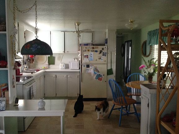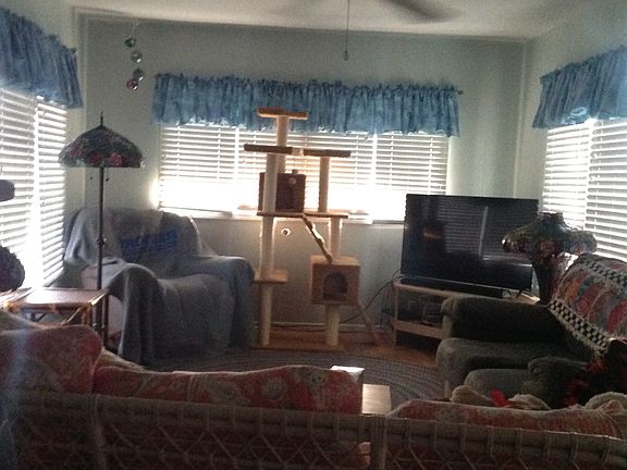 2 bedroom., 1 1/2 bath, large living room with wall a/c unit, nice master bedroomwith a/c unit, roomy privacy screened in porch,laundry room and another shed for storage , many kitchen cabinets, new vinyl flooring, very airy, and many windows for light., ceiling fans. A/c units 2 1/2 yrs old. New economy toilet in hall bath, new pedistol sink in 1/2 bath. in 55+ Mobile home park. Hawaiian Village. Park has outdoor swimming pool in pet friendly community. Lot rent $480.83 mo. No HOA fees, no R Tax, only mo. Elect. And mo . sewage/ water bills.