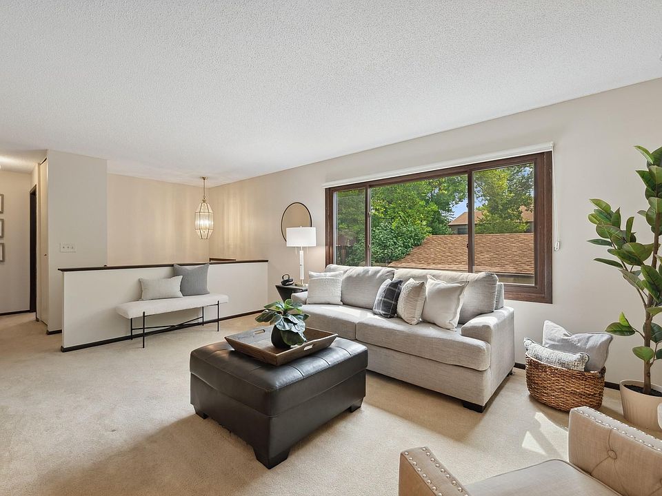 Welcome to this wonderful home! Purchase with confidence, as this home has been pre-inspected and comes with a 1 year home warranty. There are 2 garage stalls PLUS space in front of the garage doors for 2 more cars. From the garage, the entry door opens to an enclosed, private patio with access to the front door of the home. The upper level of the home has a kitchen, dinette area and living room along with 2 bedrooms and a full bath. The lower level has a large room with a WT full bath and has a full wall of closets! This room has been used as both a primary bedroom and an office. There is room to build equity with an unfinished 17x11 future family room. The washer/dryer are in the lower level with plenty of storage. A heated, below-ground community pool is a hit during the hot summers. The community also has a playground and basketball court. Conveniently located near Hwy 62 and 494. Crosstown Lifetime Fitness is within walking distance. Back on the market - buyer got cold feet.