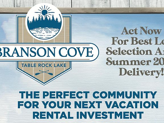 New Lake Homes! Vacation Rental Approved! Table Rock Lake Front community. Homesites with spectacular views are available! Branson Cove is a community of new lake homes with Planning and Zoning approval for vacation rental. Whether you're a savvy investor or a if you're looking for a lake getaway that produces income when you're not using it, this it the perfect opportunity! State Park Marina is located right next door! The community offers a lakefront park with a trail to the water's edge for swimming and kayaking as well as a new indoor pool & outdoor pool with waterslide. A variety of floorplans, homesites, and finish styles to choose from. Act now for best site selection! Estimated completion 7 months.