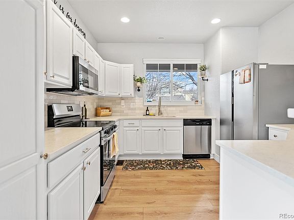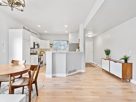 Welcome to this beautifully updated 3 bedroom, 4 bathroom home situated on a spacious corner lot. This charming property features brand new windows that flood the home with natural light, along with all new modern flooring throughout. With thoughtful updates in every room, including a beautiful kitchen with contemporary finishes, stylish bathrooms with new vanities, mirrors and light fixtures, this home is the definition of move-in ready. Additional updates include a new staircase and railing, all new window coverings, and new exterior paint! A main floor primary suite offers flexibility for every lifestyle. Upstairs you will find a very spacious bedroom with ensuite bath, as well as a large office space that could very easily be converted to a 4th bedroom. The basement offers a guest suite, ample storage, and a large bonus room with tons of versatility. With a large corner lot that offers low maintenance outdoor space for gardening, entertaining, or relaxing, and an amazing location, this is the one you have been waiting for. Walk to the Light Rail, parks, and retail, or drive just minutes to Tennyson Square or Olde Town Arvada for incredible dining and entertainment options. Don’t miss the opportunity to make this meticulously maintained home your own!