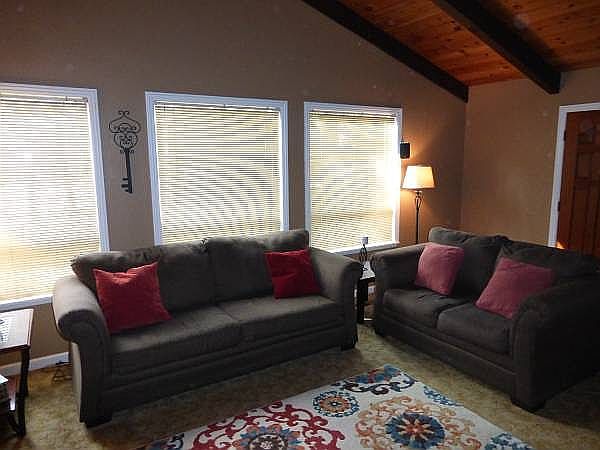 Large home on Cul-de-sac. Lots of Bonus rooms. Area has a bathroom and a few bonus rooms with its own main door entrance. It would make a potential mother-in-law unit. Woodstove. Newer septic & Passed Septic Inspection on file! Beautiful vaulted wood ceilings. The home has a separate room for laundry, large kitchen, front and side deck for entertaining in a quiet neighborhood. Close to School Bus Stop. Forced Air heating as well as a Wood Burning Stove. Home has a new A/C unit. Wired for alarm system. Kitchen has newer appliances and new wood flooring. New interior trim throughout. Two car attached garage. RV parking. Fully fenced back and side yard. Very close to POA facility with all of its amenities including: Club House, Swimming, hiking trails, tennis, etc. Bedroom count is from Appraiser