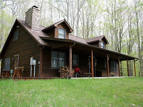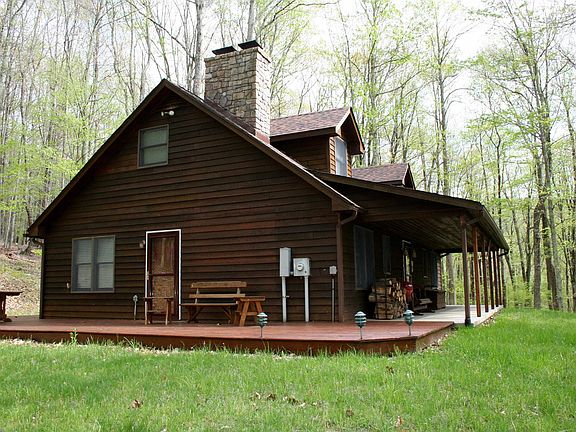 This is a great opportunity to own a slice of the Blue Grass Valley of Highland County. 16 acres of private land adjoining Rt. 640. Overlook the valley and South Branch of the Potomac River making its' way north. The cabin is comfortable for permanent residency or as a VRBO. Two fireplaces, spring water, level yard, hardwood forest all around, 2nd floor suite and 3 bedrooms.2 full baths, laundry room, open family gathering room, dining, and kitchen on the ground floor. Outside living is made even better with the large covered porch, decking, fire pit in the yard, low humidity, maybe a few bugs but not many.
