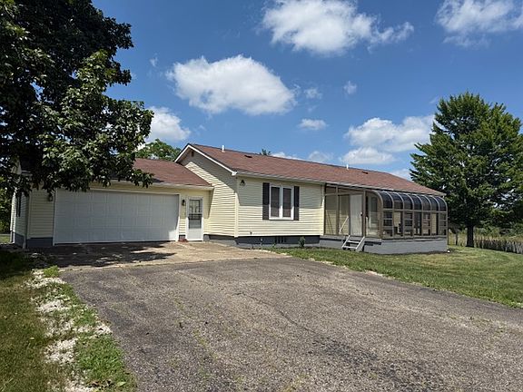 3 bedroom, 2 bathroom residential single family home with over 2 acres and a pond. Partially finished basement with a second kitchen. Washer and dryer hookups. Open-concept living room. Includes AC and a two car attached garage. Features a sun room and an abundance of storage space.