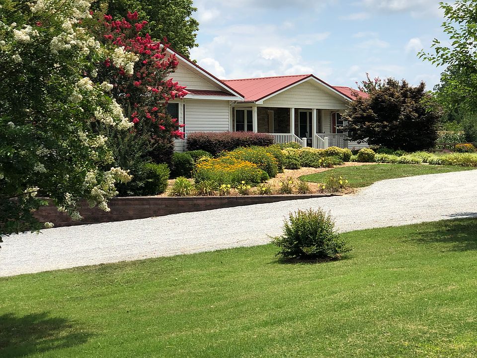 Beautiful country residence sitting on almost 3 acres of land. Nice private backyard with flowering magnolia trees. Lots of flowering shrubs and trees in spring, summer, and fall. Open floor plan. Handcrafted hickory kitchen cabinets. Master bedroom with Jacuzzi and walk-in closet. Spacious closets for each bedroom. Large laundry room. Finished walk-in basement. 32 x 56 detached garage with two overhead garage doors and concrete floor. House has central air and gas heat plus airtight wood stove.Well water. Nice patio back of the house