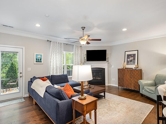 This three-bedroom, two-and-a-half bath was previously the model home! Beautiful open concept, gourmet kitchen with island, granite countertops, stainless appliances, an abundance of cabinets, pantry, and gas stove. The kitchen opens us to the den with lots of natural light from the windows and a fireplace perfect for winter. A patio off from the den makes entertaining nice. All bedrooms are upstairs, the Primary Suite has a ceiling fan and recessed lights, a large walk-in shower and double vanity. There are two more bedrooms and one full bath upstairs as well. This property has many trees on the home's side and in the back.