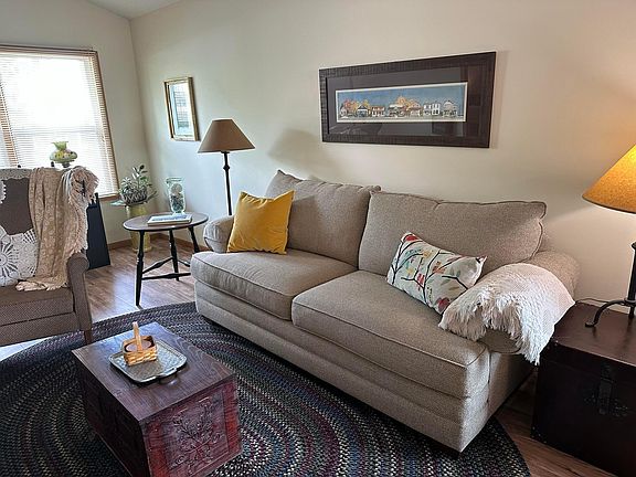 Ranch home with vaulted ceilings in the living room, dining room and kitchen. Three bedrooms and two full size baths with main floor laundry complete this updated home. Kitchen has solid surface counter tops, new backsplash and stainless steel appliances. The main living and dining area, plus third bedroom, have wood-look laminate flooring, Both bathrooms have ceramic tile. Main bedroom closet has had a closet system installed. Covered front porch along with a two car detached garage. Home is ready!