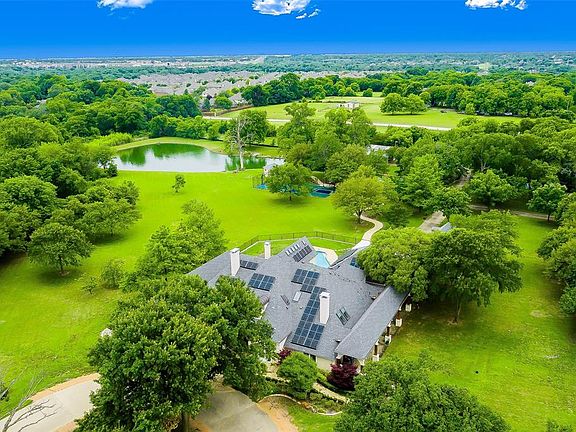 Luxurious & incredibly unique one of a kind Mediterranean style estate, grand entrance into great room w towering ceilings, Jerusalem floors & large cast stone fireplace, lounge w built-in cabinets & wine fridge, second living down could be formal dining w fireplace & built-ins, oversized master w spiral staircase leading up to living area & library, master bath w fabulous custom dressing room, over the top theater, children's retreat could be 5th bedroom. Oasis sits upon 7.61 acres w trees & stream leading to private pond w water feature & fish, bridge, multi-purpose court, cabana, covered patio, pool, hot tub, pool bath, enclosed kitchen & open patio near pond, barn & piped fence area for horses, workshop+