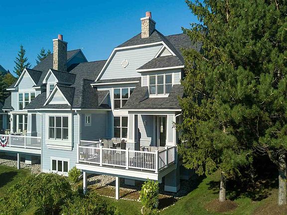 This impeccably maintained and remodeled Quarry View townhome in Bay Harbor has captivating views of the Quarry Golf Course and views of Lake Michigan. With a desirable open floor plan and spacious outdoor living space, notable features of this property include a gracious first floor master suite, double-sided fireplace, main floor living area with cathedral ceiling, den, first floor laundry and two-car attached garage. Other notable attributes include a new washer and dryer, new furnace, air conditioning and extra-large water heater, new roof and gutters, all new toilets, new carpet and new landscaping. The second floor offers two bedrooms ensuite and a bonus room for entertaining, office, bunk room or family room. This attractive home is being offered fully furnished, turn-key and includes a Gem car.