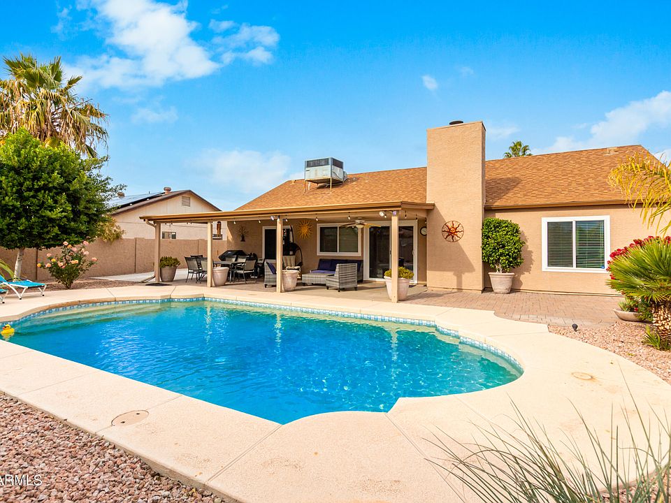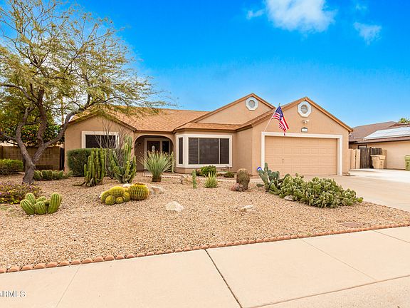 Beautiful one level home in prime Glendale location with NO HOA! This home has great curb appeal with desert landscape, inside you will find a spacious living room with cozy fireplace, neutral paint and flooring. The updated kitchen features beautifully updated cabinets, extra cabinet space for a pantry, new stainless steel appliances, and eat-in area. The primary bedroom is split with a large close with built-ins, and an en-suite bath with dual vanities, tub and shower. The bedrooms all feature luxury vinyl plank flooring. The resort style backyard has a large covered patio, sparkling pool, lush landscape, separate storage shed, and RV gate and RV parking. In a great location minutes from Arrowhead restaurants, shopping, and close proximity to parks! Don't miss this home!