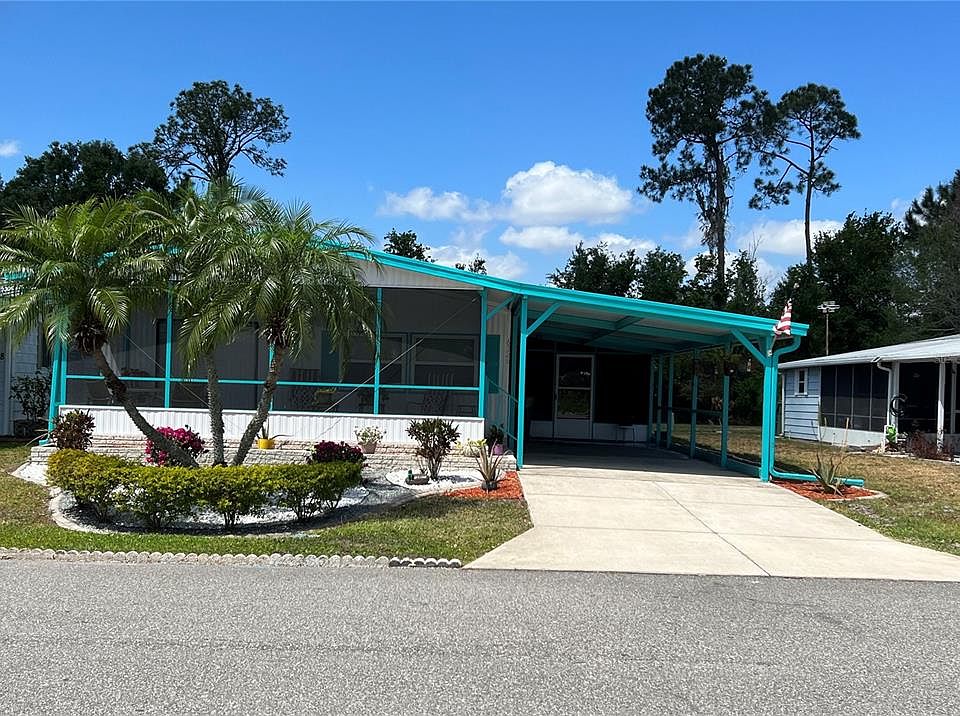 You will love this lovely well-kept 2 bedroom 2 bath manufactured home in this 55 and over community that has been updated. New vinyl plank floors in Kitchen, hallway and office, new vinyl floors in both bathrooms, new screens on front porch, new dishwasher and garbage disposal, and newly painted inside and outside in 2022 & 2023 and new vapor barrier under home. All furniture and furnishings and appliances stay. There are two porches, one on the front of home screened with beautiful view of community and another enclosed room on the side with vinyl windows.. 2 car carport. New windows 2014 & new driveway 2015. $30.00 monthly HOA dues include Clubhouse, community pool, shuffleboard court and R V lot. 2 pets up to 30 lbs allowed on this perimeter lot.