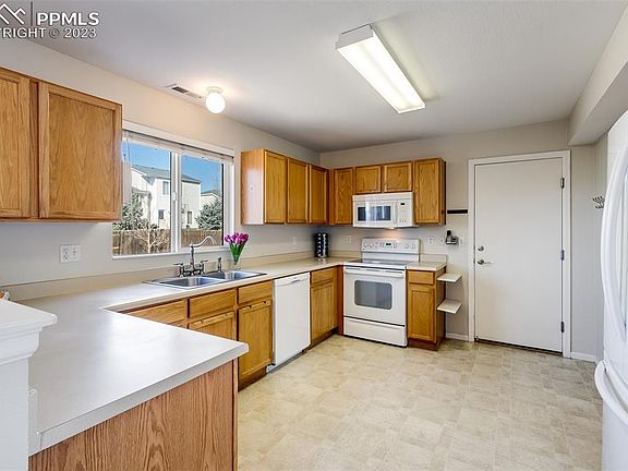 Goldilocks, you’ve found your home! Not too big, not too small, this checks all the boxes! Tucked away in a quiet neighborhood, this 3 bedroom, 2.5 bath home is move in ready and freshly painted. You’ll love the welcoming living room, the open dining room with a walk-out to the fully fenced backyard and the adjacent bright kitchen with ample cabinets, glass top stove, pantry and French door refrigerator. Convenient laundry and half bath complete the main floor. Upstairs are 3 bedrooms and 2 full baths including the primary bedroom with double closets, lofty vaulted ceilings and ensuite full bathroom. Oversized two car garage is perfect for workshop or extra storage. Large fenced backyard can host all of your summer activities! Sprinkler and drip system installed but not guaranteed. Garage door motor replaced 2022, Roof replaced in 2016. Come and fall in love today!