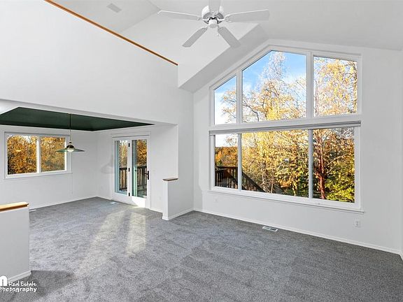 This stunning duplex-style home w/southern & western exposure sits on a huge private lot & has new paint/carpet, & triple-pane windows throughout. The upstairs features a large home office, a lofted living space & an ensuite w/walk-in closet. Downstairs is the vaulted living room, dining room, kitchen & the 2nd bedroom. There's a large deck & a 2-car garage -- all on a private dead-end street.