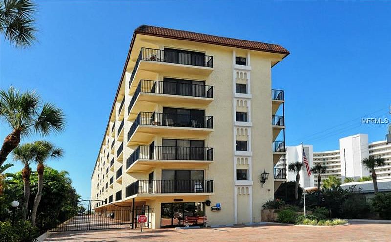 Spacious Gulf side 2br/2ba w/ Living room & Family room which could be used as an extra sleeping area (add a closet & it is a large 3rd bedroom). This end unit has almost 1500 Sq. Ft. under air with 2 open balconies, one of which wraps around the Family room & Living room while the other is a private one off the Master bedroom. El Presidente has one of the most tropical pool areas on Siesta Key & the pool is located close to the beach. Complex also offers one week rentals for maximum rental potential (this property has been the personal residence of current owners since 1998). Kitchen has been recently updated with top of the line cabinets & appliances plus granite! You will love the fact that you can park your auto under building & walk to Restaurants, shoppes, drugstore, etc.