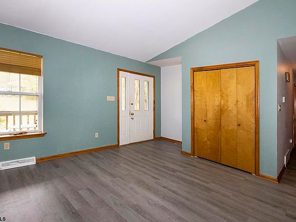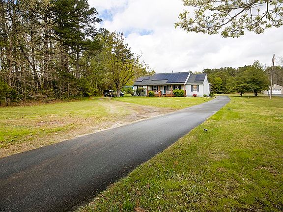 Set on almost 4 acres, this beautiful three bedroom, 2 full bath rancher offers a new septic (install planned for June), an open floor plan, two car detached garage, mostly finished basement and so much more. The driveway provides access to the home that is situated well back off the road. You will first notice the welcoming front porch, but the home also new vinyl siding, architectural shingle roof, and solar panels (PPA). Upon entering the home, you are greeted by cathedral ceilings that span the open floor plan kitchen, dining & living rooms. The spacious kitchen features nice cabinetry and an island with storage. New flooring flows through these rooms and into the hallway. From here you can access the primary bedroom which features new paint, vaulted ceiling, a walk in closet, and a spacious primary bathroom. The bath is complete with shower stall, dual sinks, soaking tub, and neutral paint. Also down this hall are two additional bedrooms with carpets, ample closet space, and windows for natural light. The hallway full bathroom has tile floors, new medicine cabinet and a vinyl tub surround. The backyard goes well into the woods, but also features a shed and 2 car detached garage. The Sellers plan to remove the pig pen and chick coup areas prior to closing unless the Buyer would like those to stay. Please do not touch/pet/play/feed the pigs & chickens.